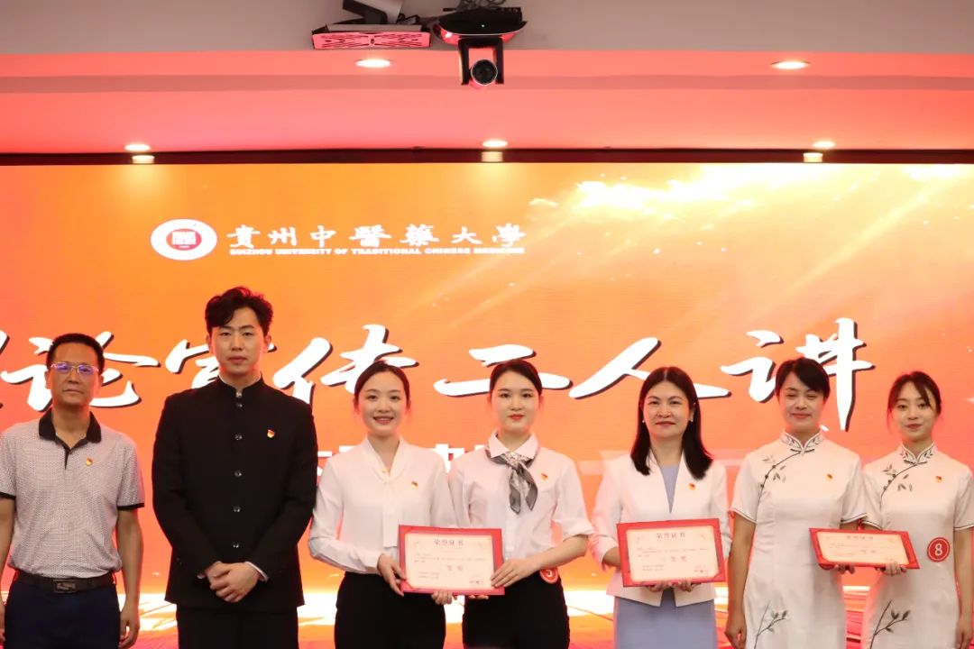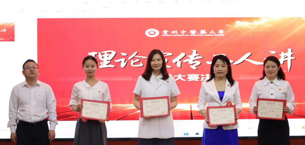 从16支初赛队伍中遴选出的9支队伍进入决赛,同台竞技。各参赛队伍围绕习近平总书记和党中央对贵州工作的高度重视、对贵州人民的关怀厚爱、赋予贵州新的时代重任、寄予新的殷切期望,采用“教工党员+教工党员”“教工党员+学生党员”组队形式,通过真情讲述构筑中医药数智发展新高地、修好新时代青年党员“心学”、“医润童心·科教同行”协同化育人、基层医疗振兴路上的生命守护、赋能中药材全产业链发展等生动实践,深刻阐释、共同探讨了如何推动习近平总书记在贵州考察时的重要讲话精神在贵中医深入人心、落地生根、见行见效,为现场听众带来一场理论宣讲的“精神盛宴”。