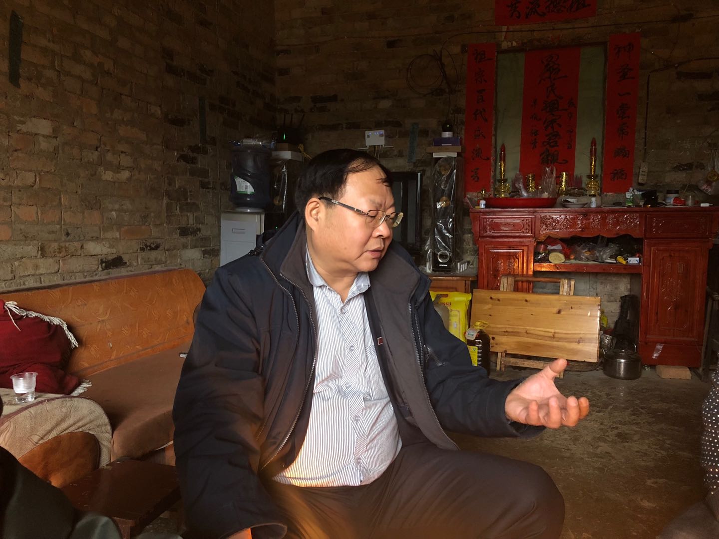 图为刘兴德校长在村民家中。校长办公室 供图