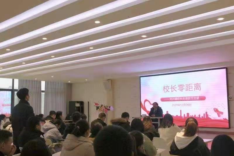 12月4日,学校党委副书记、校长刘兴德走进防艾协会,与同学们“零距离”交流,校团委全体人员、防艾协会青年志愿者80余人参加本次活动,校团委书记尚炬、副书记梁明珠参加活动。