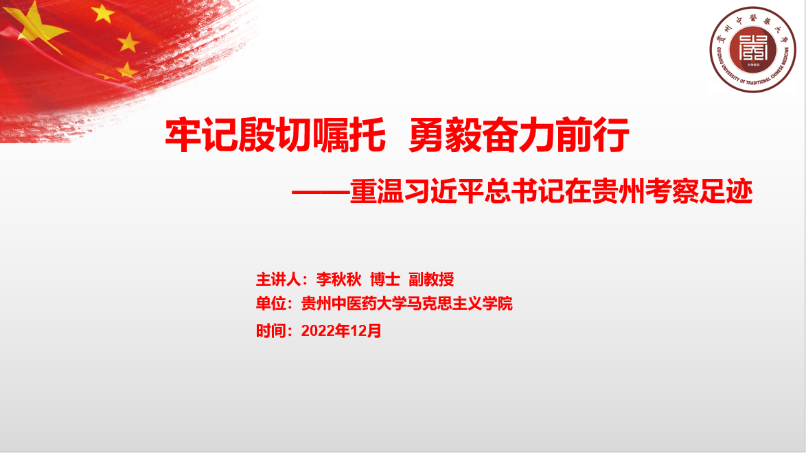 李秋秋讲到,党的十八大以来,习近平总书记两次赴贵州考察调研,参加十二届全国人大二次会议贵州代表团审议,参加党的十九大贵州省代表团讨论,多次就贵州工作作出重要指示,为贵州发展指明了前进方向、提供了根本遵循。