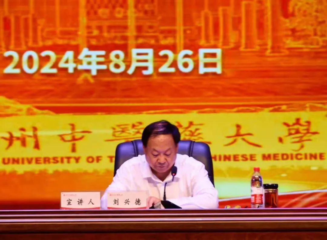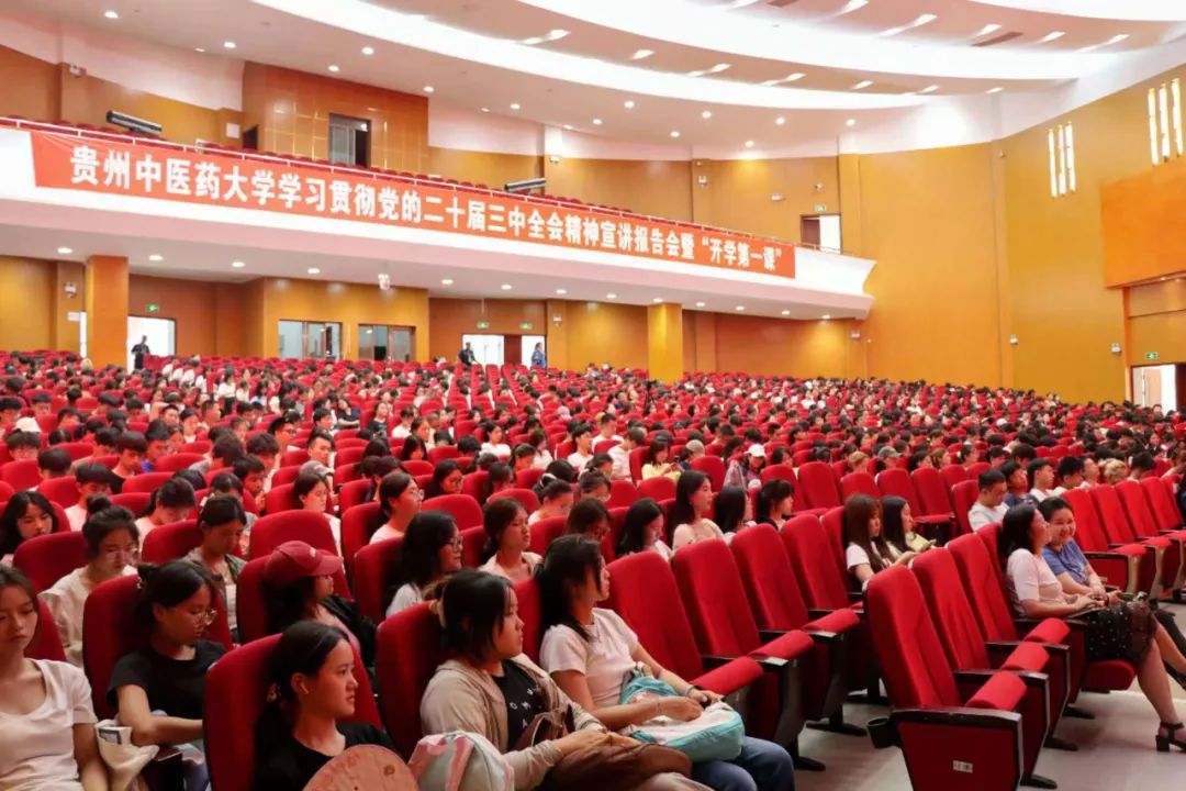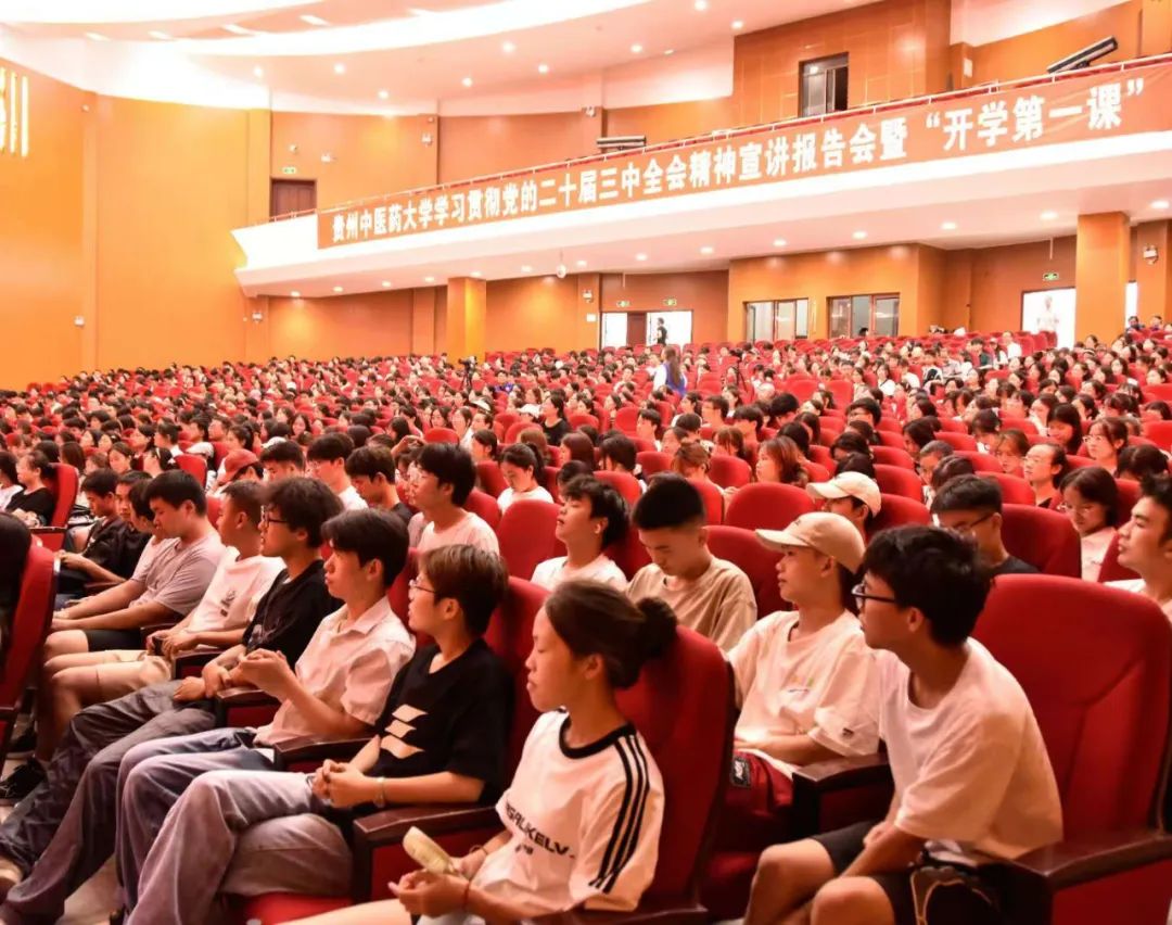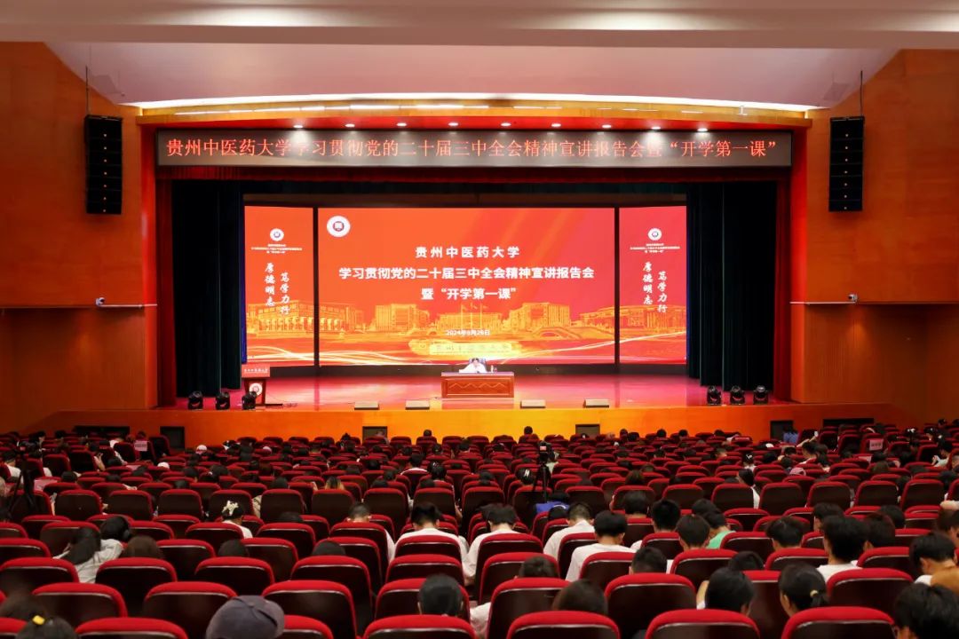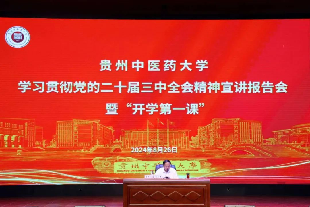8月26日下午,学校在花溪校区礼堂举办学习贯彻党的二十届三中全会精神宣讲报告会暨“开学第一课”。校党委书记邬卫东主持,校党委副书记、校长刘兴德作宣讲。校领导于浩、李兴、周英、唐东昕及1000余名师生代表参加。