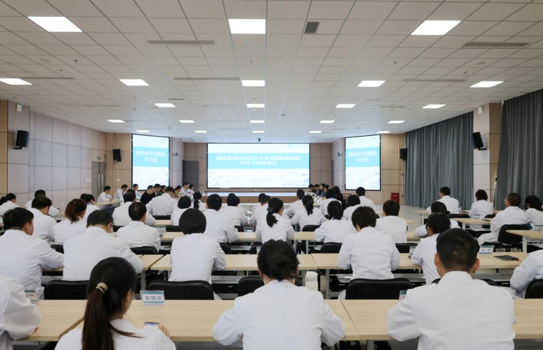 黔西南州人民政府副州长霍盛红、州卫生健康局党组书记黄丽,校党委副书记明雪梅,省教育厅高教处干部罗南剑,我校教务处负责人,黔西南州中医医院党政负责人、相关科室人员及全体职工参加。省中医药管理局科教处处长丁群主持评审工作。