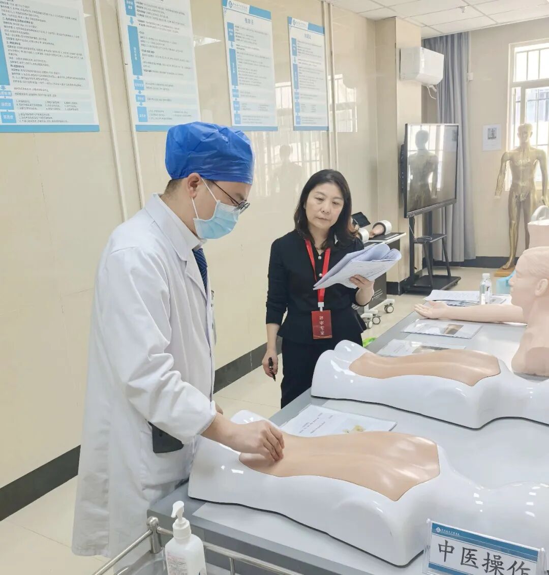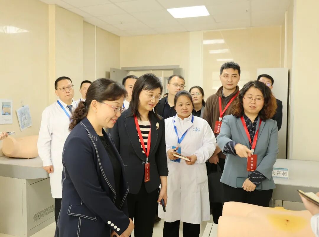以遵义医药高等专科学校党委书记蒋红梅为组长的专家组按照《贵州省高等医学院校临床教学基地评审指标体系》,对医院基本条件、临床教学管理、临床教学实施进行系统评审。专家组查阅科室管理台账、教学记录等资料,实地考察临床技能实训中心、病房、教学管理区域等场所,并通过理论测试、实践考核、个别访谈等多种方式,对医院的教学条件、管理流程和培训质量进行了全面评估。
