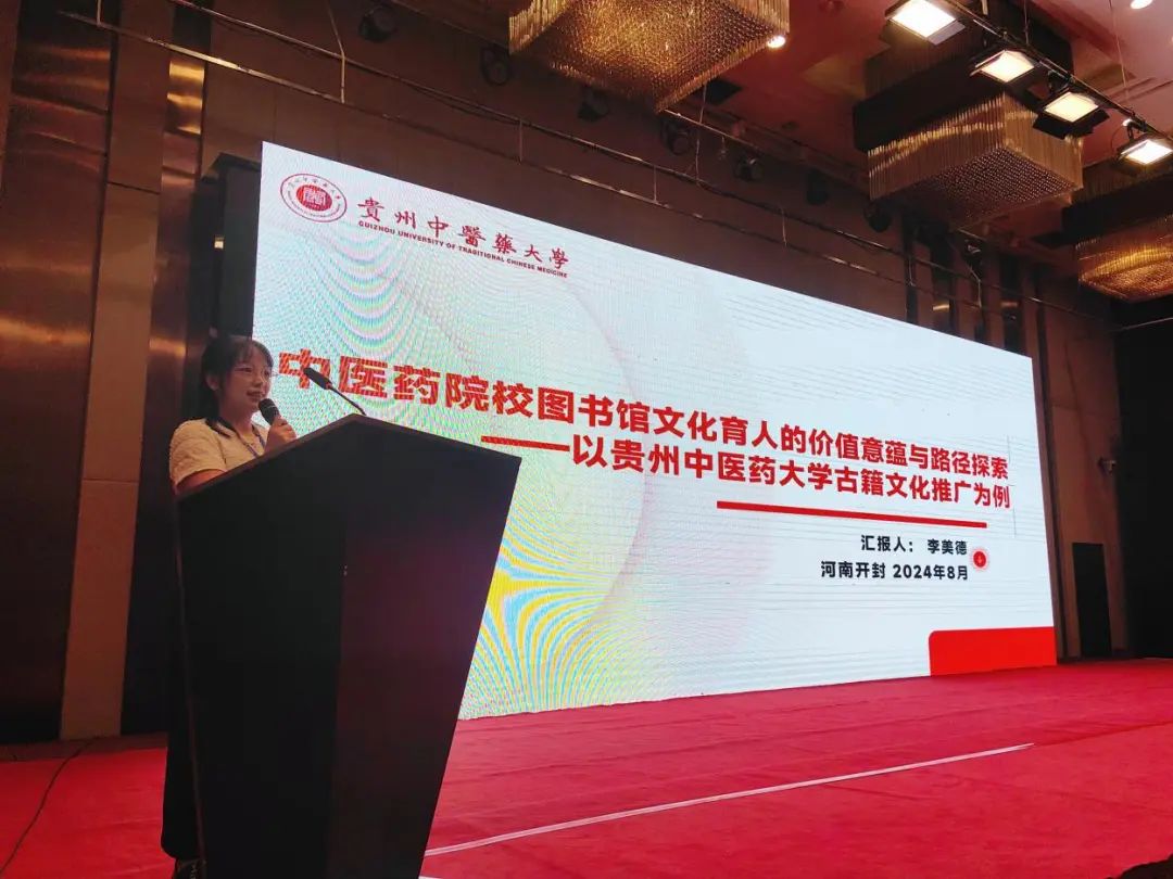 李美德在青年工作者论坛上以《中医药院校图书馆文化育人的价值意蕴与路径探索》为题作交流,分享了图书馆结合学校办学特色及学科发展,发挥中医药古籍在校园文化中的作用,打造具有中医药文化特色校园文化的创新做法和成效。