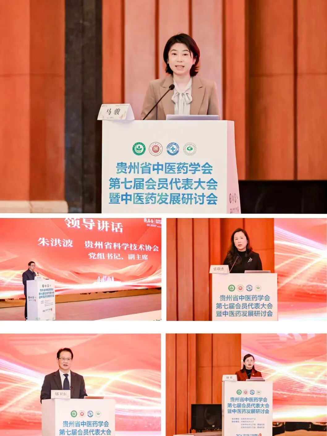 中华中医药学会副秘书长马骏,贵州省科学技术协会党组书记、副主席朱洪波,贵州省卫生健康委党组成员、省中医药管理局党组书记、局长张敬杰,校党委书记邬卫东等出席开幕式并致辞。强调中医药发展须扎根传统、紧扣时代,在坚守中医思维和精髓的基础上,推动学术、服务与产业协同创新,为健康贵州建设和中医药强省战略贡献力量。校长周英主持大会。