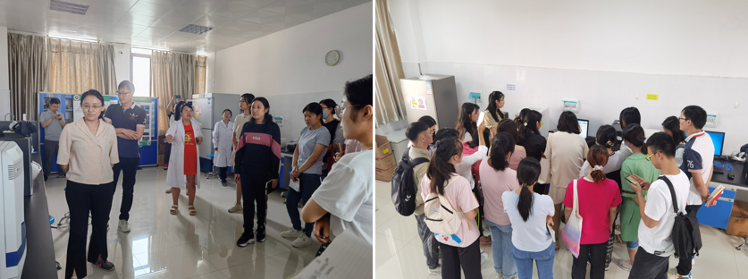 在分子标记室,研究院李鹏飞博士讲解了分子标记实验的原理和用途,演示了聚丙烯酰胺凝胶电泳实验的操作全过程。现场师生彼此交流互动,坦言获益匪浅。