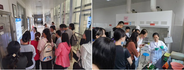 在凝胶电泳室,研究院何华博士介绍了蛋白免疫印迹的基本原理,并结合平台的仪器设备进行现场操作演示,同时指出了实验中的注意事项,让现场师生印象深刻。