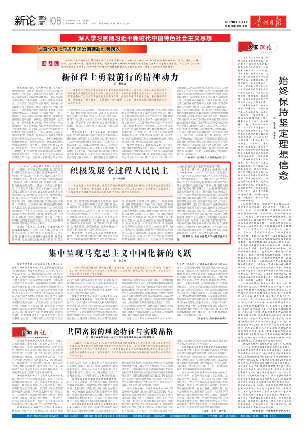 9月28日,《贵州日报》在08版“理论周刊”刊发我校青年博士、马克思主义学院教师韦佳伲理论文章《积极发展全过程人民民主》。