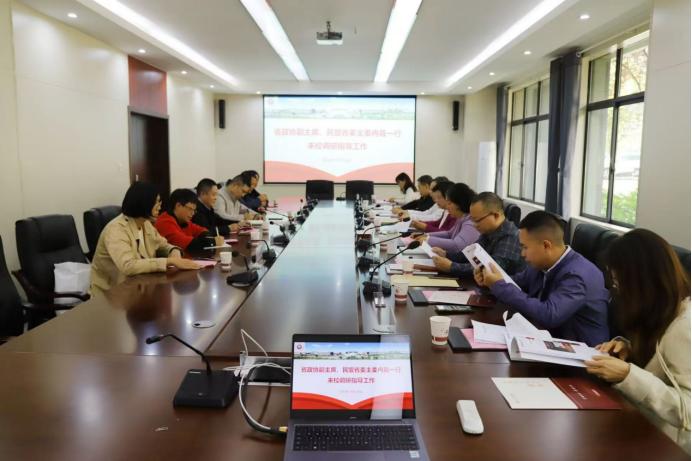 10月18日,省政协副主席、民盟贵州省委主委冉霞一行到我校调研并召开座谈会。民盟贵州省委专职副主委黄琳,民盟贵州省委副主委、贵州民族大学副校长崔海洋等参加。