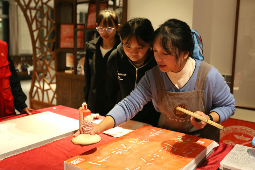 日前,学校第三届 “翰墨金声” 拓印大赛在图书馆7楼拓碑技艺展示体验中心举办。大赛吸引全校百余名拓印爱好者参加。
