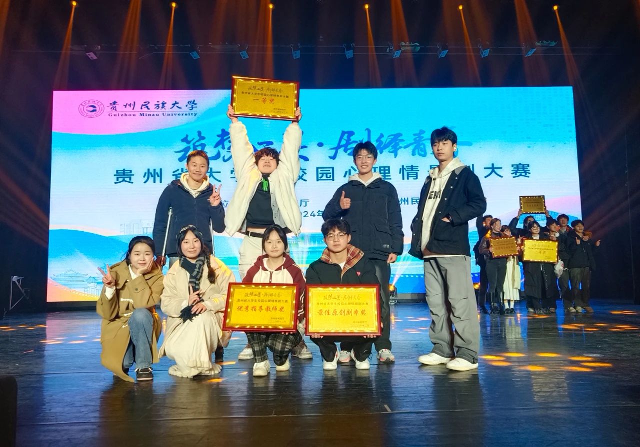 日前,由省教育厅主办的“筑梦心灵·剧绎青春”贵州省大学生校园心理情景剧大赛决赛在贵州民族大学举行。我校师生创作并演绎的心理情景剧剧目《嘿!独角兽》,凭借出色的创意、深刻的主题内涵和精湛的演技荣获省赛一等奖,同时获得最佳原创剧本奖和优秀指导教师奖。