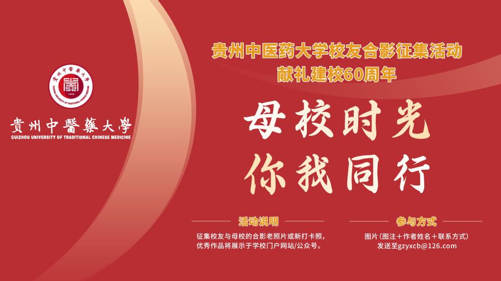 优秀作品将登上学校官网、公众号与视频号,让更多人看见你与贵中医的深情羁绊,一起为母校建校60周年增添温暖注脚。参与方式:请将合影(注明图说),以“作者姓名+联系方式”命名方式发送至邮箱gzyxcb@126.com。
