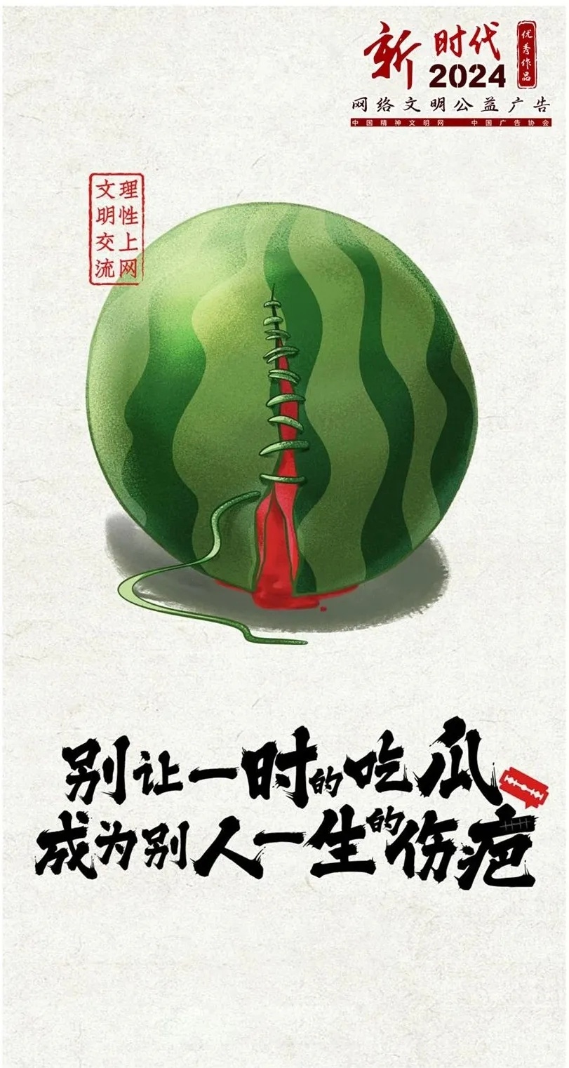 首页 首页 上一篇:用心防范电信诈骗|2024年“新时代网络文明公益广告... 下一篇:我校专家参加第四届中医适宜技术国际健康促进大会... 文明上网|2024年“新时代网络文明公益广告”优秀作品展播 2025.08.28 15:50:45 中国文明网 弘扬主流价值、传播文明理念、传承中华优秀传统文化、培育时代新风。2024年“新时代网络文明公益广告”征集展示活动优秀作品近日公布,共有50件作品入选。今天给大家分享的是优秀作品《文明上网》。