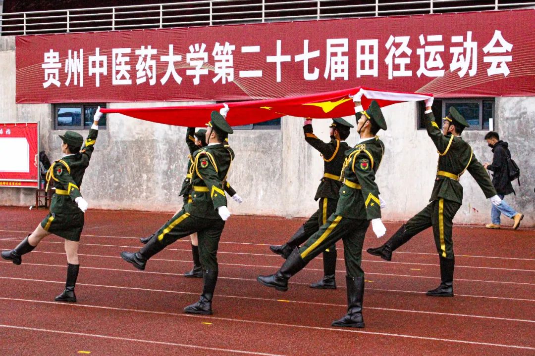 伴随着激昂的进行曲,校国旗护卫队、校旗护卫队和各学院代表队依次入场经过主席台。他们口号嘹亮,步伐整齐,充分展现了中医学子朝气蓬勃、昂扬向上的青春风采。