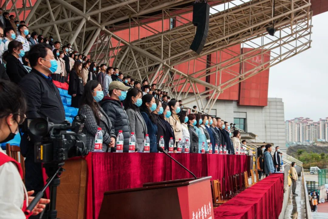 邬卫东代表学校致开幕词。邬卫东指出,体育承载着国家强盛、民族振兴的梦想,群众体育、竞技体育、健康中国已然成为我国体育事业的未来走势和发展目标。我们将以本次运动会为契机,以落实立德树人为根本任务,以培养兴趣、养成习惯、掌握技能、增强体质为主线,充分发挥体育在学校高质量过程中为师生健康筑基、为改革发展赋能、为自信自立铸魂、为体育强国增力的效能,不断推动学校体育改革发展取得新成绩。