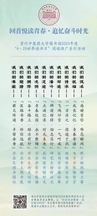 近年来,校图书馆以发挥文化育人职能为主线,积极推动书香校园建设,持续营造“全民阅读,终身学习”的浓厚阅读氛围,把图书馆建成理想信念教育基地、中医药文化传承高地、学生成长快乐园地、“三全育人”探索阵地,助力培养德智体美劳全面发展的社会主义建设者和接班人。