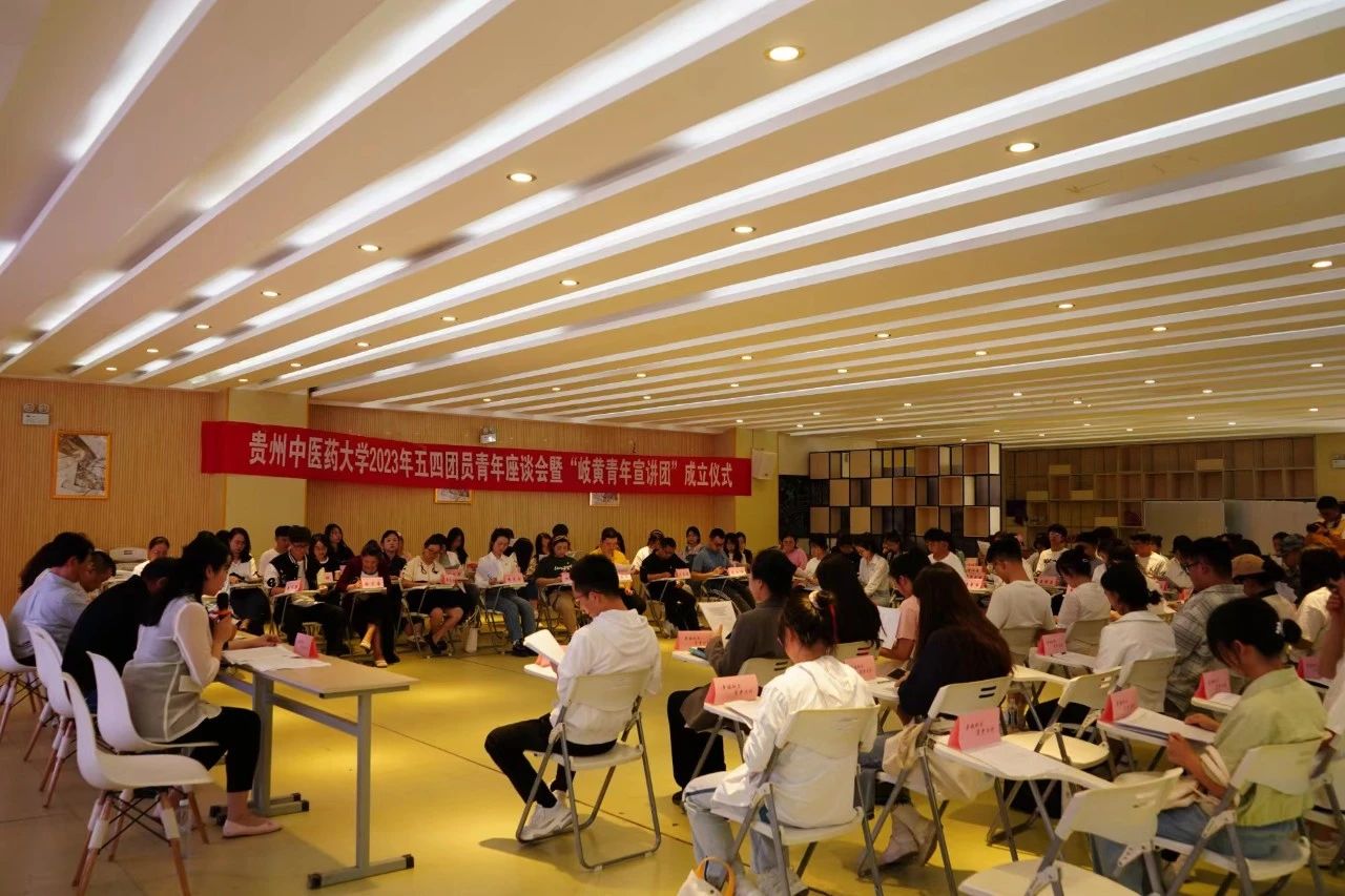 为深入学习贯彻党的二十大精神,继承和发扬五四精神,引导广大团员青年担负时代使命,争做时代先锋,5月4日下午,学校在花溪校区召开纪念五四运动104周年团员青年代表座谈会并举行“岐黄青年宣讲团”成立仪式。