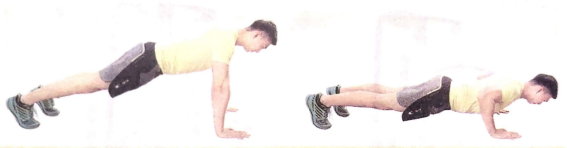 1.两脚并拢,脚尖着地。两手前臂平行屈肘支撑。