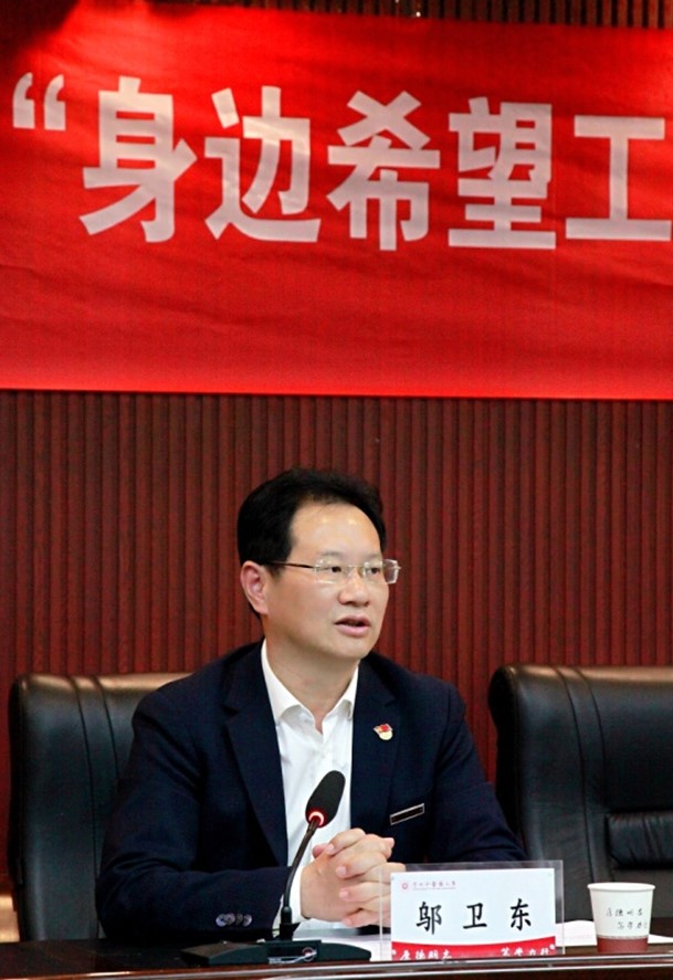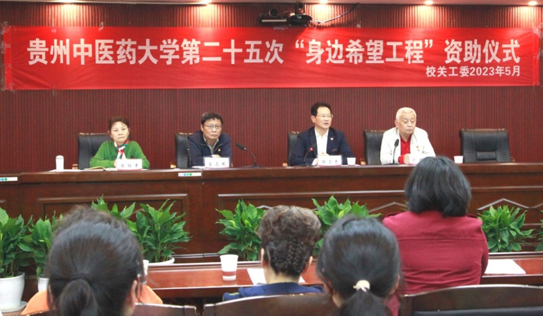 5月10日下午,校关工委在花溪校区行政楼一楼会议室举行2023年“身边希望工程”爱心助学资助仪式。校党委副书记、校关工委主任邬卫东出席并讲话。校关工委常务副主任吴志刚主持。