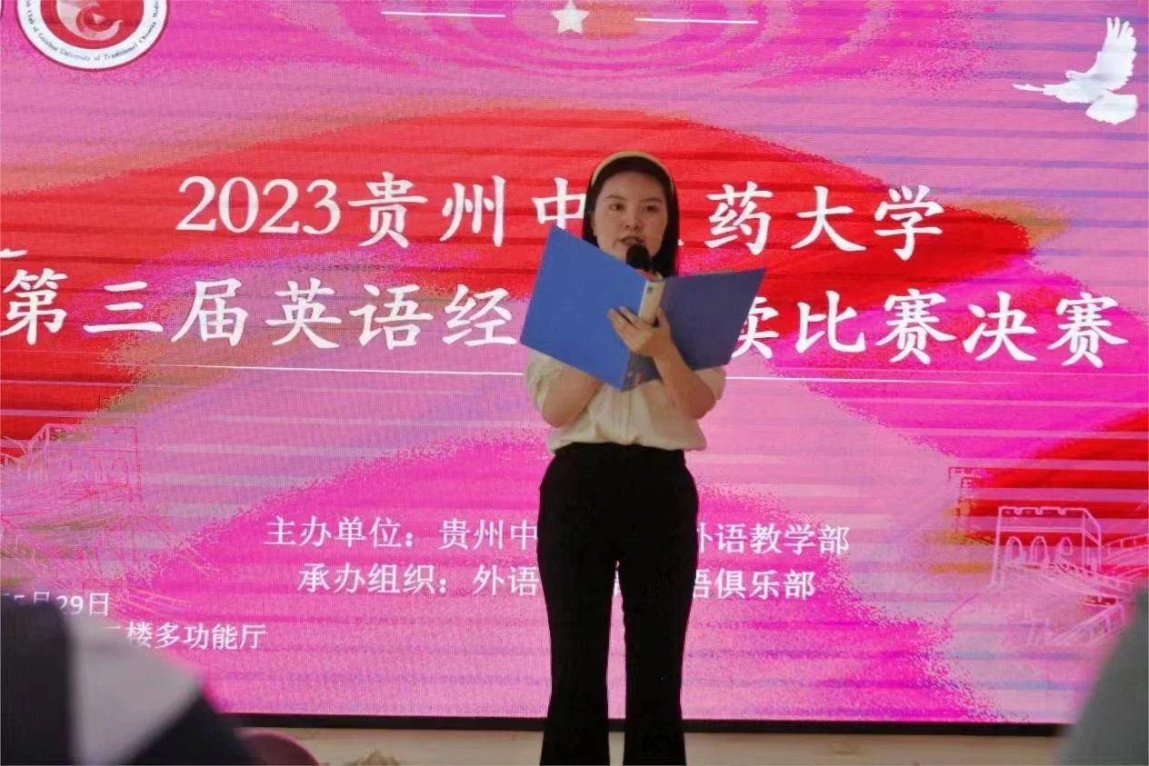 为深入学习贯彻落实党的二十大精神,传承中华文明、弘扬中国精神,加强校园文化建设,5月29日下午,外语教学部指导外教部英语俱乐部举办的“学习二十大精神·诵中国经典,扬中华文明”全校第三届英语经典诵读比赛决赛在花溪校区学生活动中心举行。
