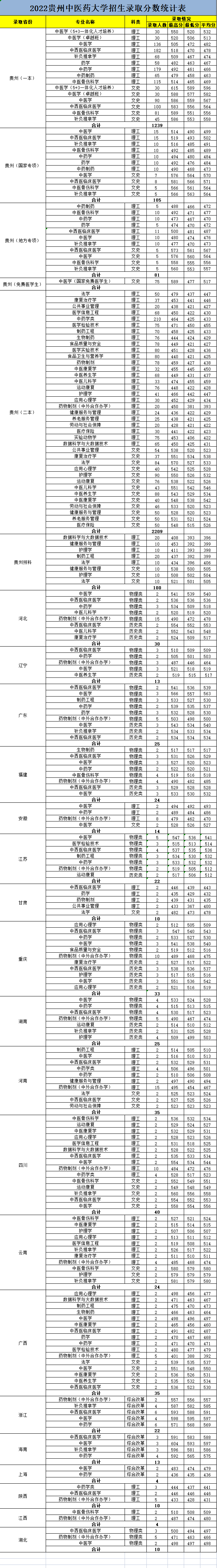2022分省分专业录取分数统计