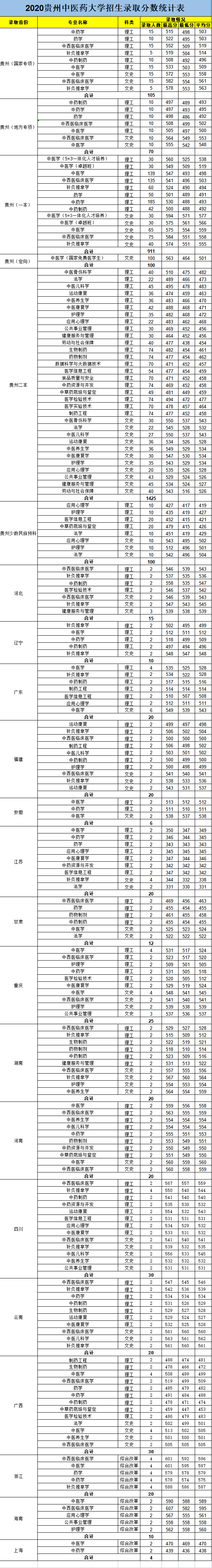 2020年分省分专业录取分数统计