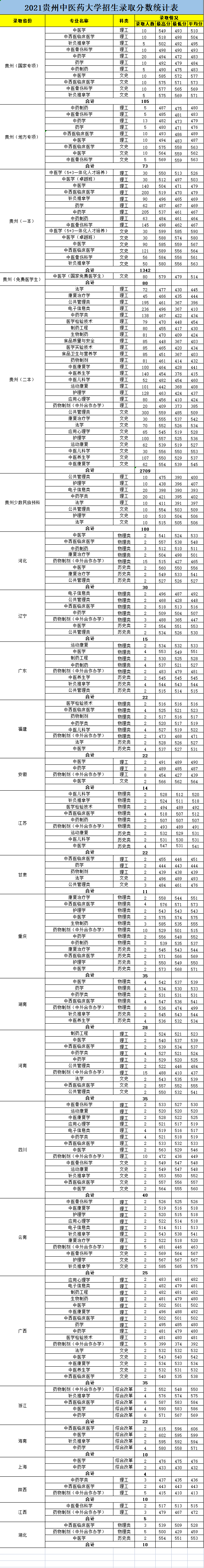 2021年分省分专业录取分数统计