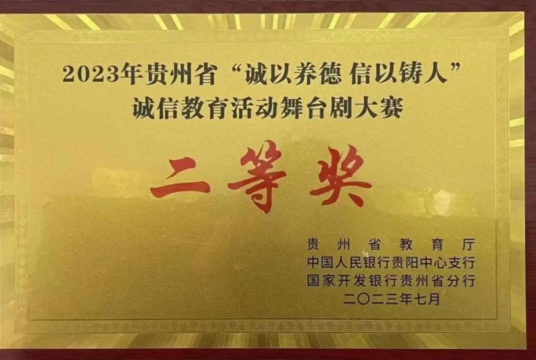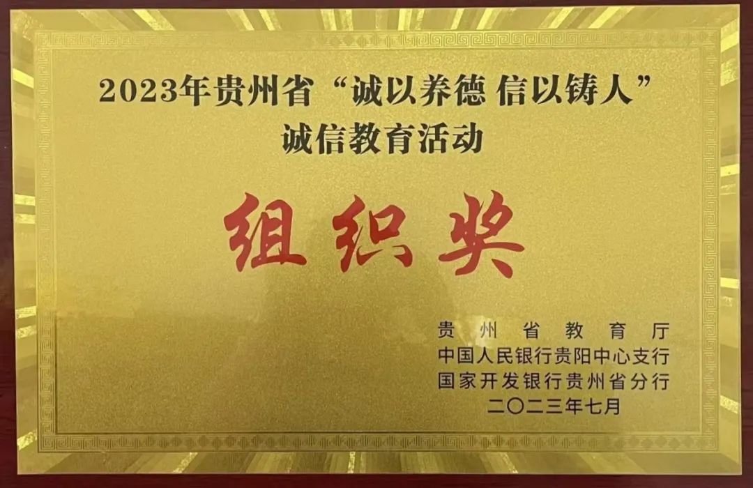 7月上旬,由贵州省教育厅、中国人民银行贵阳中心支行、国家开发银行贵州省分行主办的2023年“诚以养德 信以铸人”贵州省诚信教育活动决赛暨颁奖仪式在贵州大学举行。