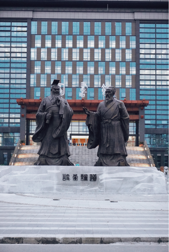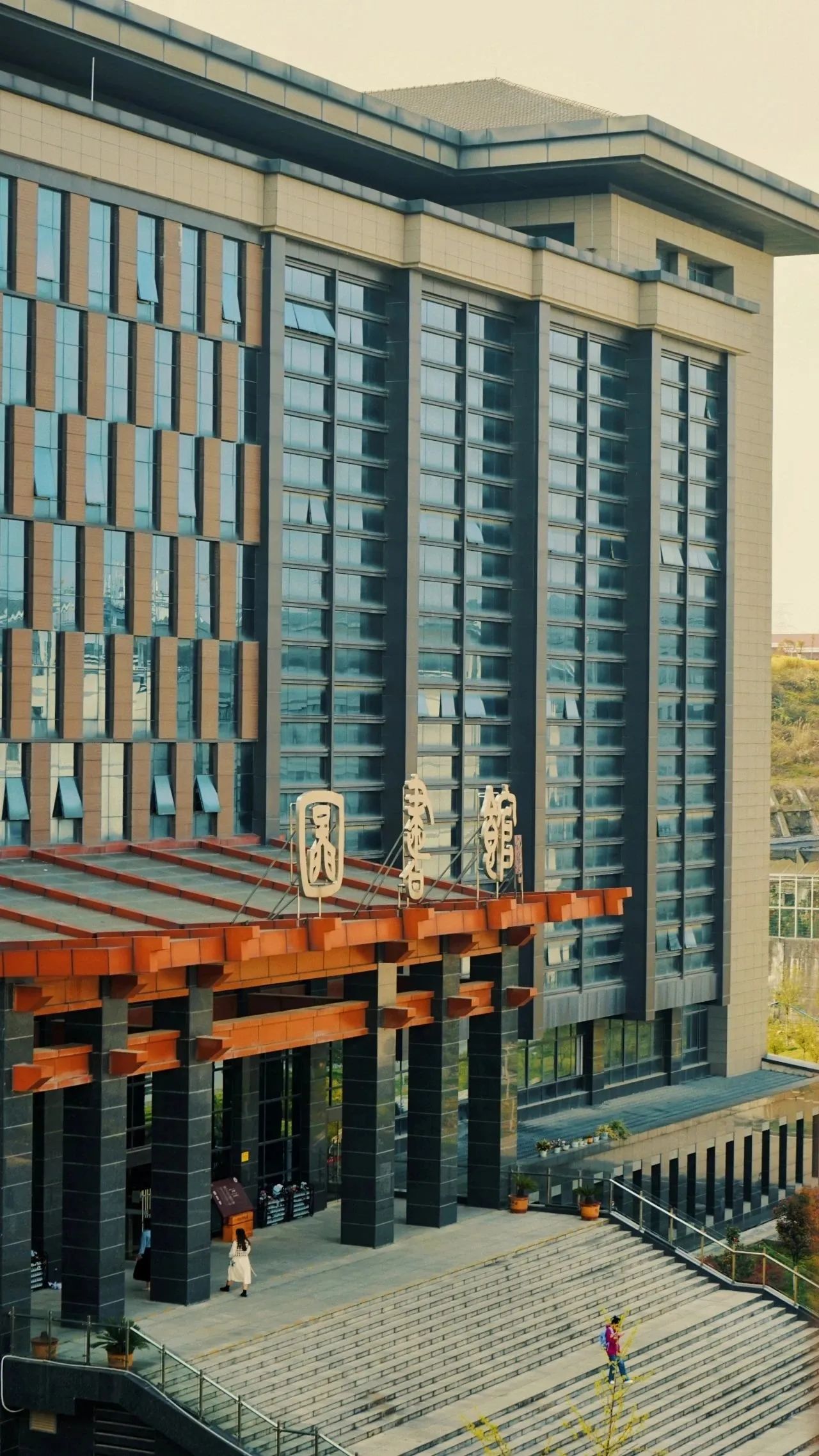 步入365英国上市公司(集团)官方网站花溪校区正门,首先映入眼帘的就是学校的标志性建筑——坐落于中轴线岐黄广场之上,尽览校园风光的图书馆。