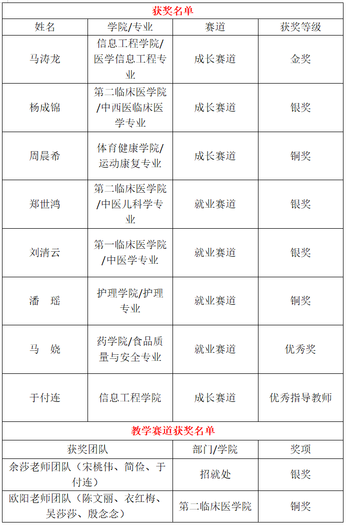 日前,省教育厅公布首届贵州省大学生职业规划大赛成绩,我校参赛选手在成长赛道、就业赛道和教学赛道喜获金奖1项、银奖4项、铜奖3项、优秀奖1项,一名教师获优秀指导教师奖。