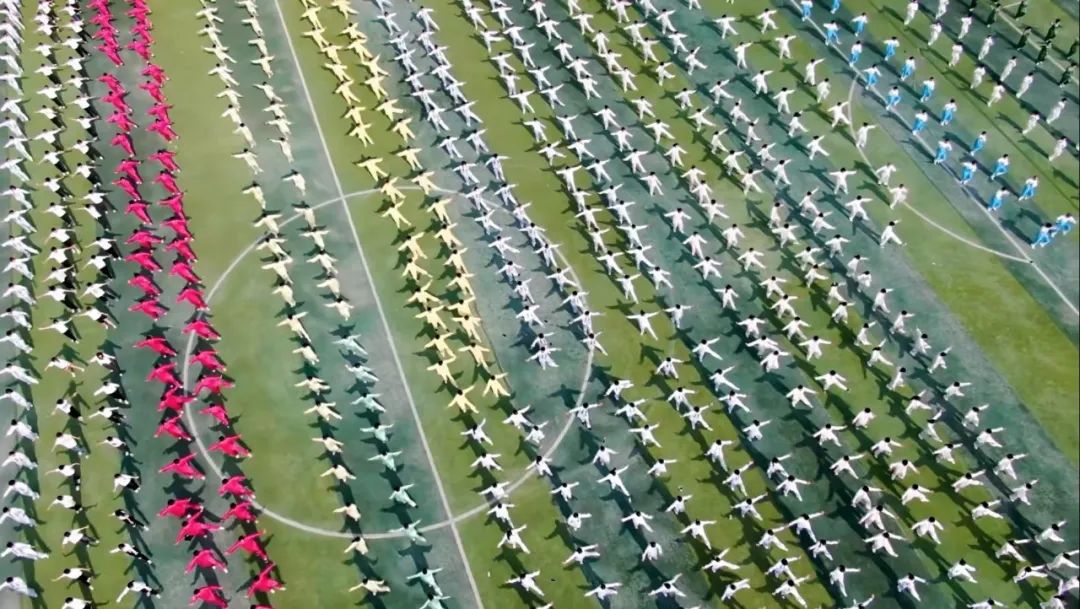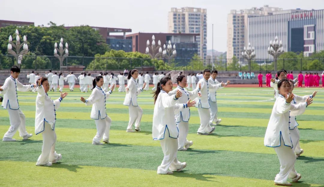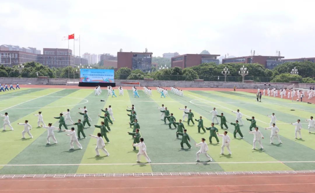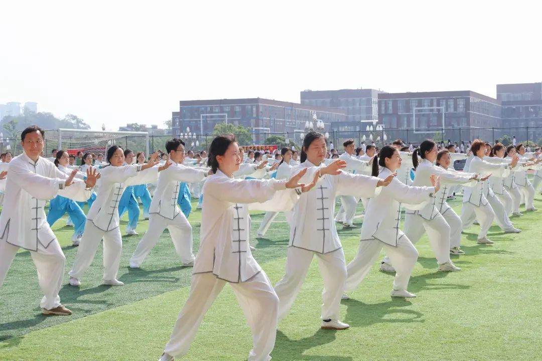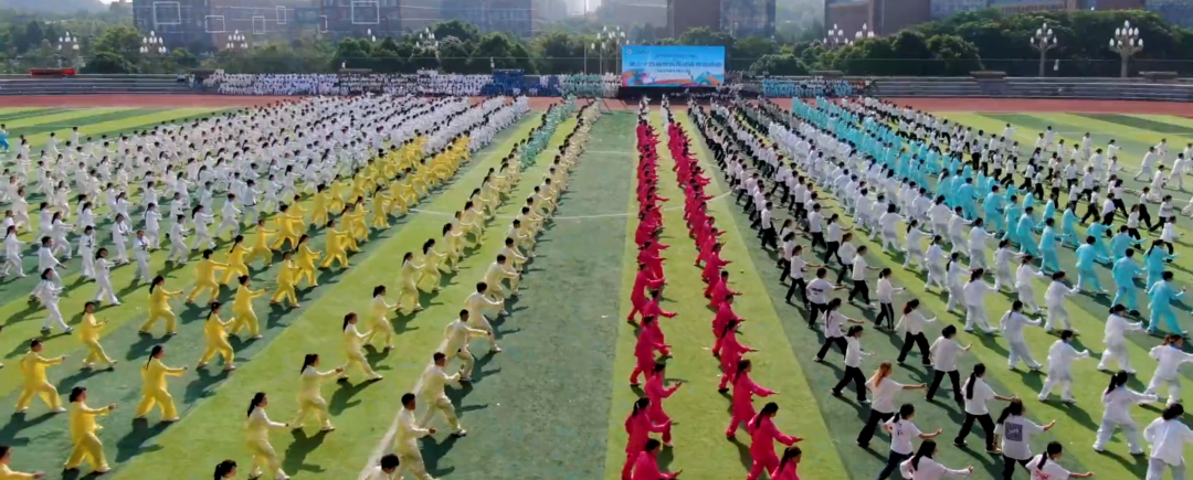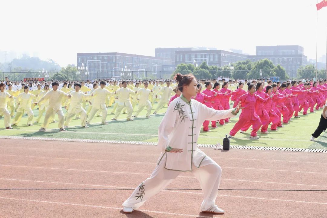 在太极拳表演环节,近3000人组成方阵,蔚为壮观。一招一式,整齐划一,给现场观众带来了一场视觉盛宴,全面展示了学校体育教育和传承中华优秀传统文化的丰硕成果。