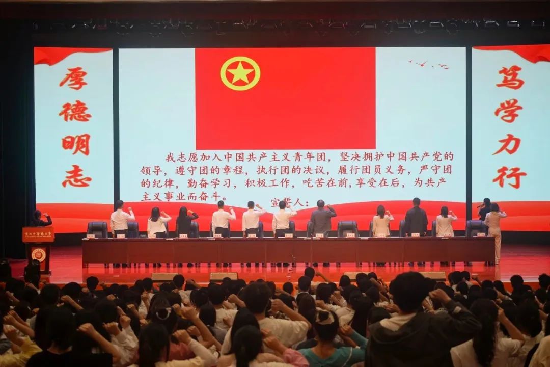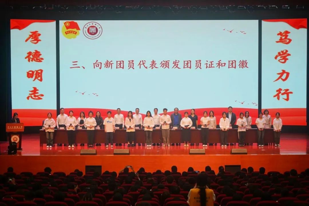 4月28日,在第75个五四青年节来临前夕,为表彰先进,树立典型,激励各级团组织和广大团员青年创先争优,学校在花溪校区礼堂举行2024年五四表彰暨新发展团员集中入团仪式。