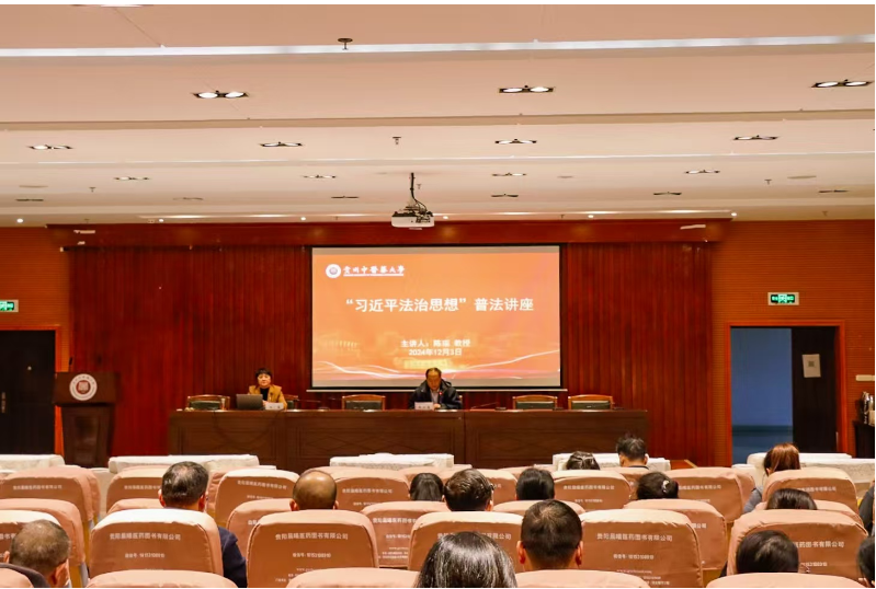 为深入学习贯彻党的二十大和二十届二中、三中全会精神,学习宣传习近平法治思想,加强学校法治教育工作,增强全体师生的法治意识,12月3日下午,我校在花溪校区图书馆二楼学术报告厅开展普法专题讲座。校党委副书记、校长刘兴德主持。各职能部门、各学院教职工参加。