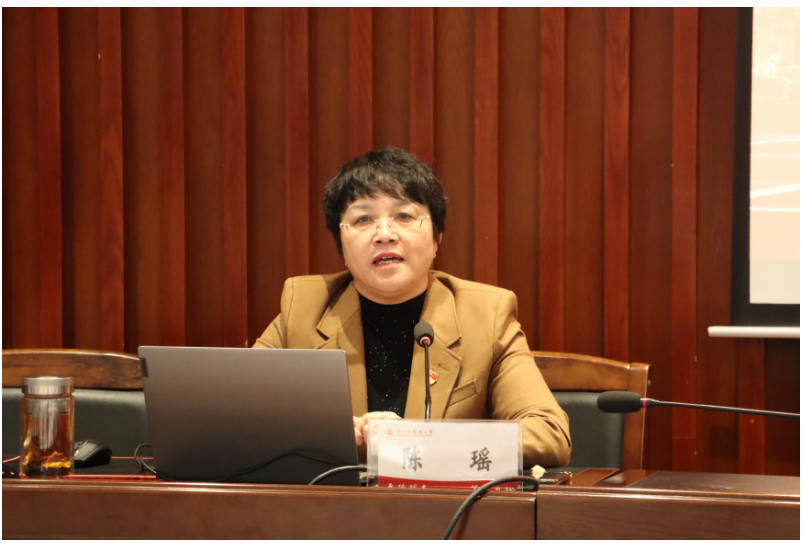 人文与管理学院党委书记、中华中医药学会人文与管理学会副主任委员、贵州省法学会民商法学会副会长、贵州省公共应急专家库专家陈瑶教授,以《习近平法治思想》为题授课。