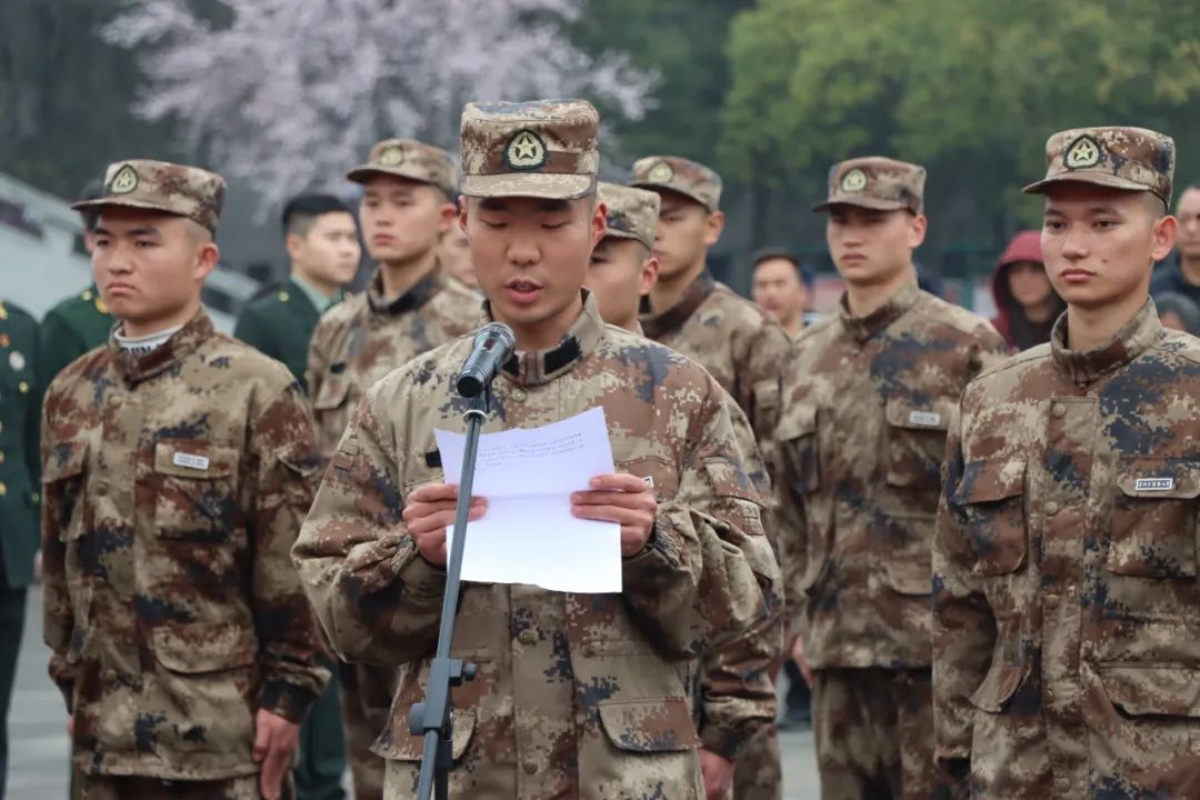 新兵代表石殿杰发言时表达了对学校和老师的感激之情。他代表全体新兵庄严承诺:“在军营中,我们将刻苦训练,磨砺意志,锤炼品格,努力成为一名合格的军人,用青春和汗水报效祖国和人民,不负学校老师和同学的期望,不负家乡父老的重托!”
