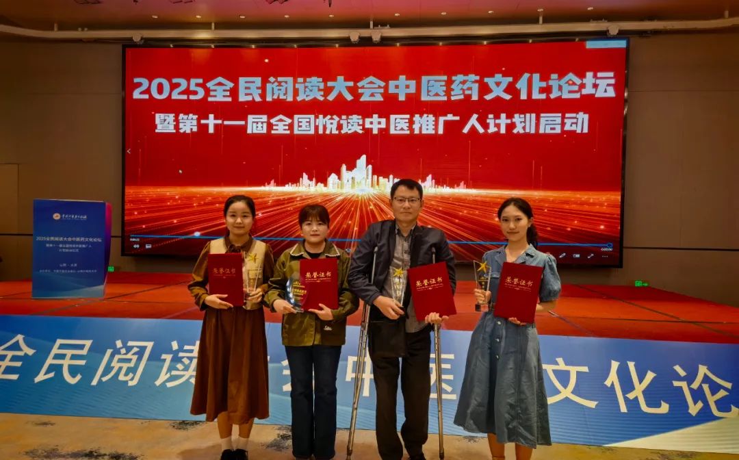 近日,在山西太原举行的2025全民阅读大会中医药文化论坛暨第十一届全国悦读中医推广人计划启动仪式上,我校师生喜获多项荣誉。其中,学校荣获“优秀组织单位”称号;图书馆张弦老师,第一临床医学院学生鞠岳桦、梁景斯,第二临床医学院学生肖畅,中医养生学院学生先星星获评2024“全国中医药阅读推广人”;图书馆吴玲老师荣获“优秀指导老师”。