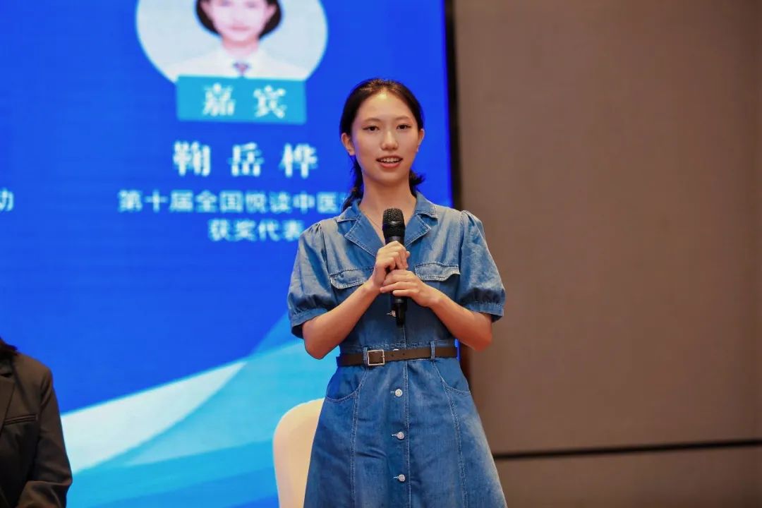 作为获奖代表,鞠岳桦同学在大会圆桌论坛环节以“悦读中医,品味书香之美”为主题作交流发言,并推荐《名老中医之路:续编》等中医好书。