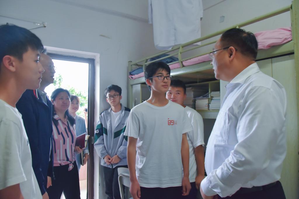 刘兴德一行最后来到了学生宿舍,先后走访了多个学生寝室。刘兴德饶有兴致的查看同学们书架上的书籍,和同学们亲切交流,他特别提醒同学们不要沉溺于网络和游戏,尽可能多地将时间投入到学习中去,不负青春,将来为贵中医增光添彩,为强国贡献力量。