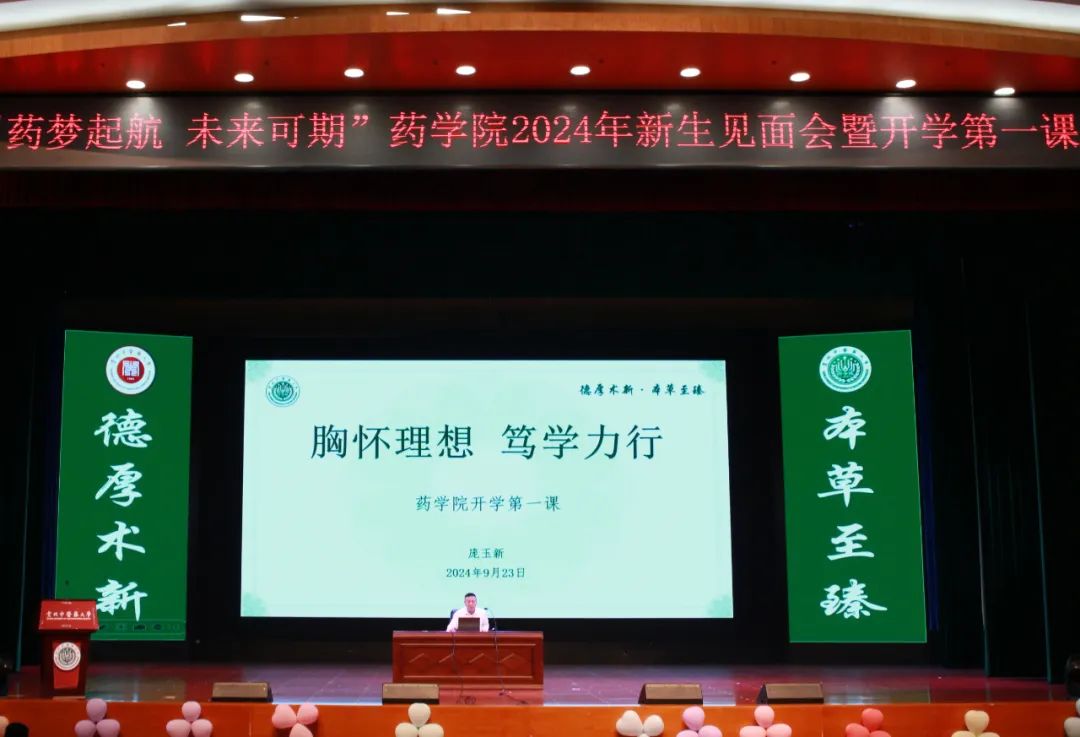 9月23日晚,“药梦起航 未来可期”药学院2024年新生见面会暨开学第一课在花溪校区礼堂举行。药学院党委副书记、院长庞玉新教授以“胸怀理想,笃学力行”主题,为1000余名新生上“开学第一课”。