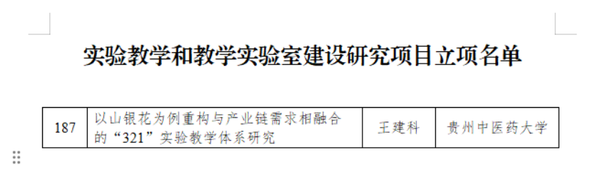 日前,教育部高等教育司公布实验教学和教学实验室建设研究项目名单,我校药学院王建科教授主持的“以山银花为例重构与产业链需求相融合的‘321’实验教学体系研究”项目获批立项实施。