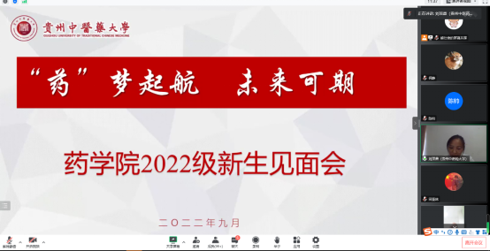 9月19日下午,药学院举办了“云端初相见,启航新征程——2022级新生线上见面会”活动。活动共分为五场,通过线上腾讯会议的方式连续举行。副校长于浩出席会议,药学院党委班子成员、专业负责人、教研室主任、实验室主任、行政科室主任、新生班专兼职辅导员及全体2022级新生参加会议。大会由药学院党委副书记刘顶鼎主持。