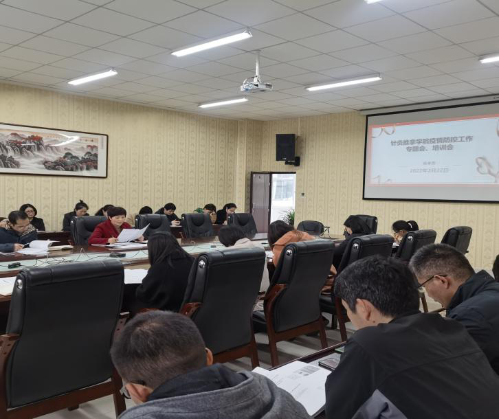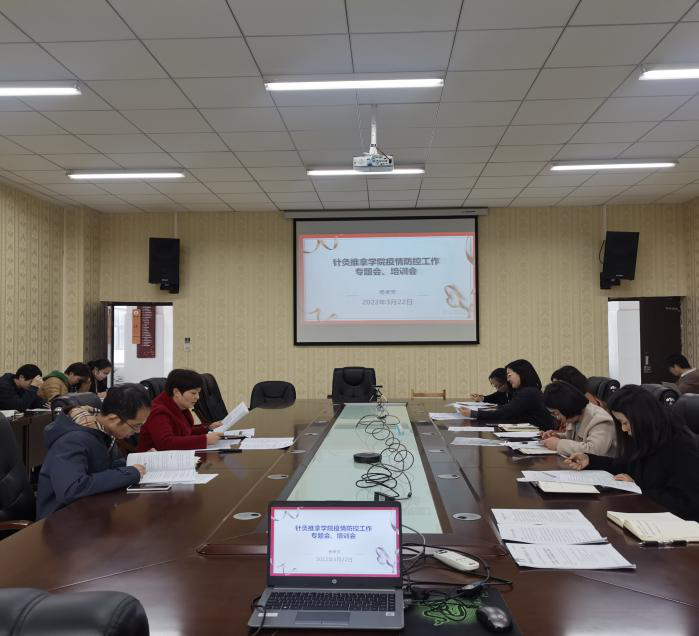 3月22日,针灸推拿学院党委书记杨孝芳主持召开学院疫情防控工作专题培训会,从疫情防控新政策、30种违法违规行为、学校疫情防控处置流程以及学院疫情防控要求四个方面展开专题学习和培训。