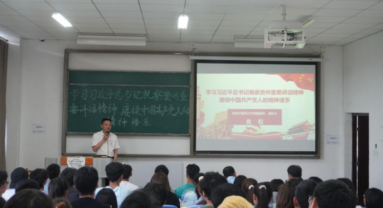 校领导俞松为骨伤学院师生上党课近日,学校党委委员、副校长俞松以“学习习近平总书记视察贵州重要讲话精神,赓续中国共产党人的精神谱系”为题,为骨伤学院师生上党课。