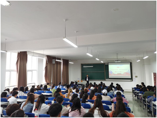 5月18日,在花溪校区河间楼3-1教室,校党委委员、副校长俞松以“百年坚守有信仰,初心不变为人民”为题给护理学院师生上了一堂生动的思政课。护理学院党委书记石国凤、党委副书记顾鸿,院各部门教师、2019级和2020级的学生共同聆听了讲座。