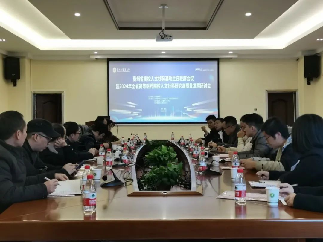 1月6日,由贵州省教育厅指导,贵州省中医药(民族医药)产业发展研究中心、贵州省高校人文医药研究中心、贵州省健康发展研究中心联合主办的贵州省高校人文社科基地主任联席会议暨2024年全省高等医药院校人文社科研究高质量发展研讨会,在我校花溪校区举办。