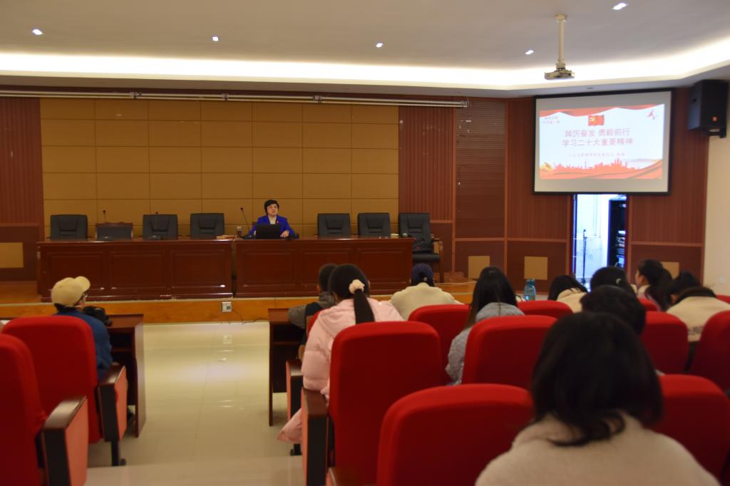 3月中旬,人文与管理学院党委书记陈瑶在笃学楼5楼模拟法庭,以“踔厉奋发,勇毅前行”为题,以学习贯彻党的二十大精神为主线,为师生讲授春季学期“开学第一课”。