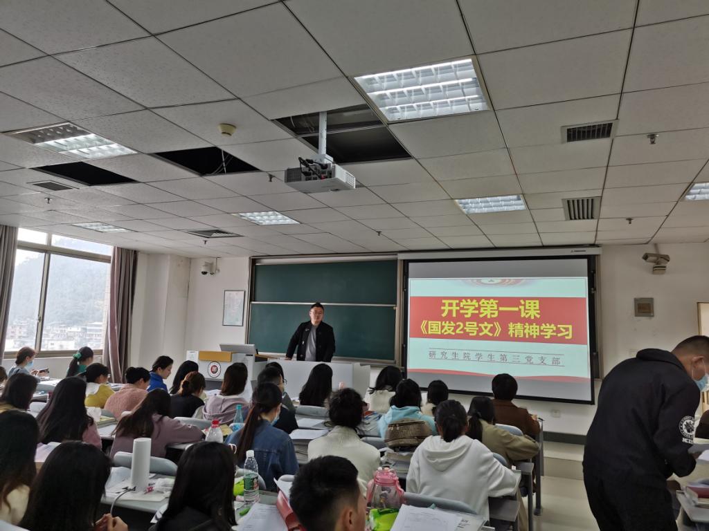 春季学期开学以来,研究生院党委所属7个学生党支部,积极组织春季“开学第一课”活动,深入学习讨论《关于支持贵州在新时代西部大开发上闯新路的意见》(国发〔2022〕2号)文件精神。