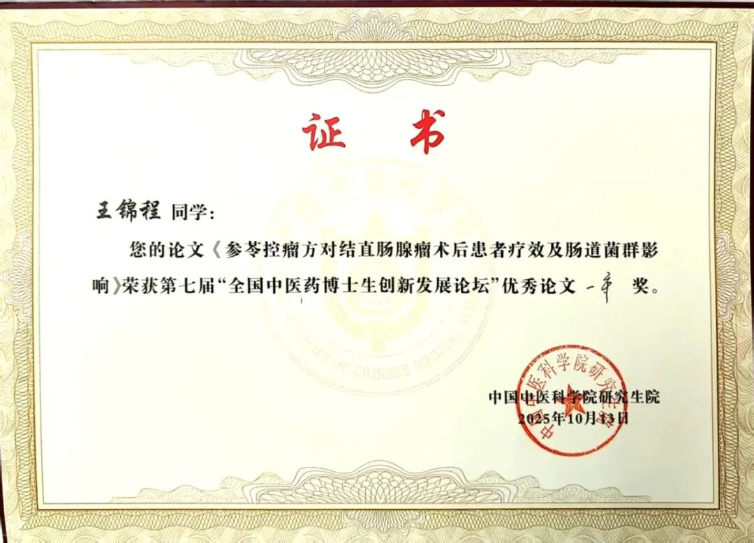 “全国中医药博士生创新发展论坛”是我国中医药领域博士生学术交流的高层次平台,旨在拓宽学术视野,激发创新思维,促进学科交叉与科研合作。本次论坛共设置一等奖4项、二等奖8项、三等奖16项,优秀奖40项。