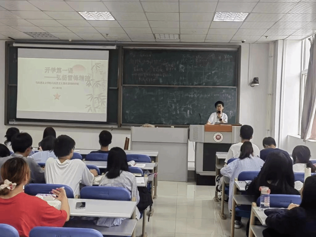 任课教师将雷锋精神与教育教学内容有机融合,大力弘扬雷锋精神的育人价值和榜样引领作用,让思政课教育教学成为广大师生“开学加油第一站”。学院党总支书记韦伟在《形势与政策》课上,深挖雷锋精神内涵,引导学生把雷锋精神内化为个人的行为准则;在《习近平新时代中国特色社会主义思想概论》课上,李秋秋老师讲到,雷锋精神是中国共产党人精神谱系的重要组成部分,新时代大学生要树立“强国有我”的使命感与责任感;张翔老师讲授《马克思主义基本原理》时,在“人民性”和“六个必须坚持”的丰富内涵里融入雷锋精神,激发学生用实际行动传承和弘扬雷锋精神;熊佳老师在《思想道德与法治》课上,让学生认识到雷锋是思想道德修养的楷模,雷锋精神价值永恒,帮助其树立正确的世界观、人生观和价值观。