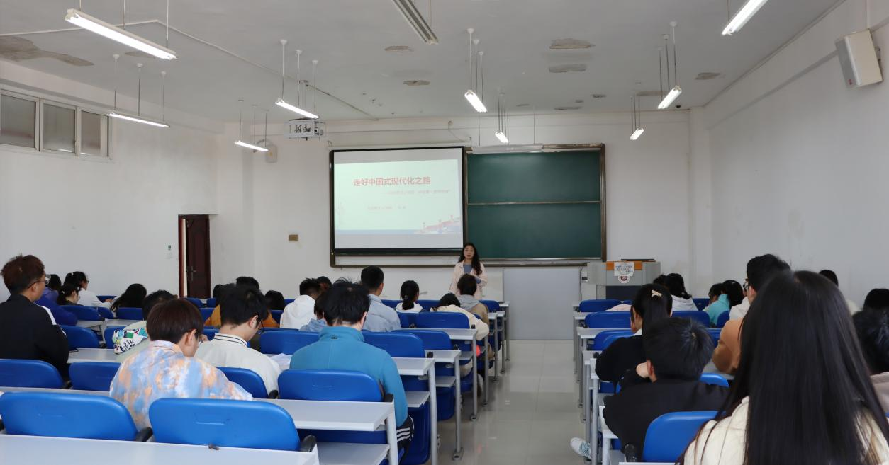 近日,马克思主义学院党总支书记韦伟以一名思政课教师的身份,带头走进课堂、站上讲台,以“走好中国式现代化之路”为题,讲好“开学第一堂思政课”。